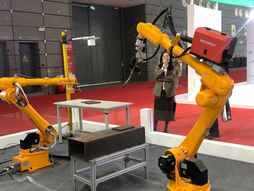 在專業(yè)展示區(qū):人工智能產(chǎn)業(yè)展區(qū),埃夫特聯(lián)合合作伙伴:安徽工布智造工業(yè)科技有限公司展示了兩套智能焊接機(jī)器人方案。