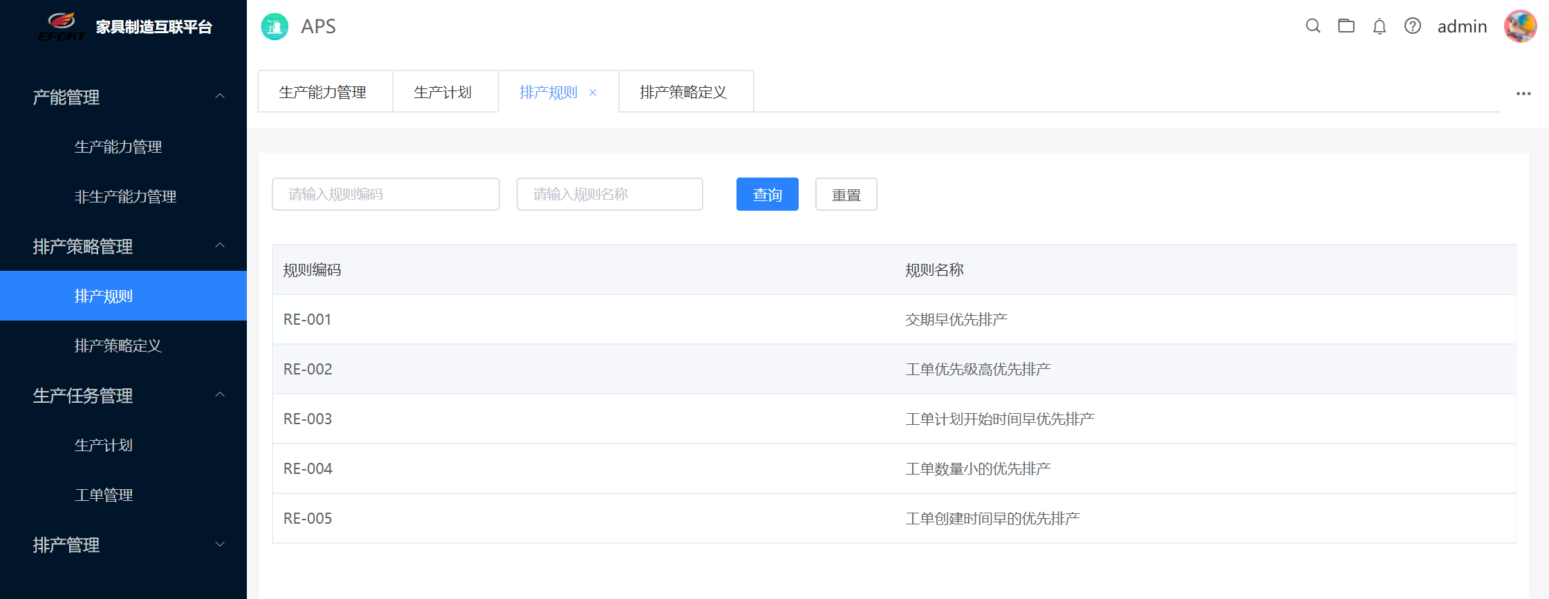 對(duì)此,埃夫特憑借全系列機(jī)器人產(chǎn)品研發(fā)基礎(chǔ)和行業(yè)應(yīng)用工藝經(jīng)驗(yàn)積累,為家具行業(yè)推出了數(shù)字化一體解決方案,APS高級(jí)計(jì)劃與排程系統(tǒng)聚集家具行業(yè)生產(chǎn)管理需求,可幫助企業(yè)解決生產(chǎn)效率低下,人工成本投入巨大、交付周期過(guò)長(zhǎng)等問(wèn)題。